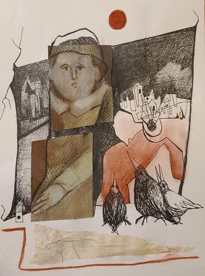 Collages 2024 - Navegación Técnica mixta - 28 x 30 cm 2020 - Bizarrito 1 Técnica mixta 49 x 32 cm 2022 - Eclipse lunar Técnica mixta- 15 x 20 cm 2009 - Serie Horizontes Collage - 29 x 10,5 cm (6) 2018 - El hilo Collage - 20 x 20 cm 2009 - Serie Horizontes Collage - 29 x 10,5 cm (14) 2020 - Bizarrito 2 Técnica mixta - 45 x 32 cm 2009 - Serie Horizontes Collage - 29 x 10,5 cm (11) 2009 - Giganta Técnica mixta - 30 x 12 cm 2022 - Pez rojo Gouache - 50 x 35 cm 2009 - Serie Horizontes Collage - 29 x 10,5 cm 2022 - Bello Sueño Técnica mixta - 20 x 28 cm 2017 - Cosmogonía Técnica mixta - 25 x 25 cm 2022 - Otoño Gouache - 50 x 35 cm 2018 - Vuelo entre mundos Técnica mixta - 38 x 27 cm 2018 - Tránsito Collage - 20 x 20 cm